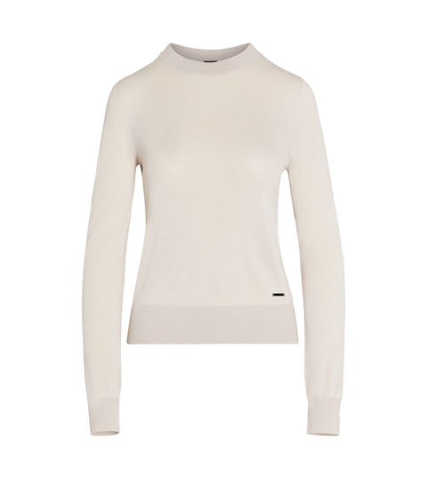 • Gerippte Abschlüsse an Ausschnitt, Ärmeln und Saum