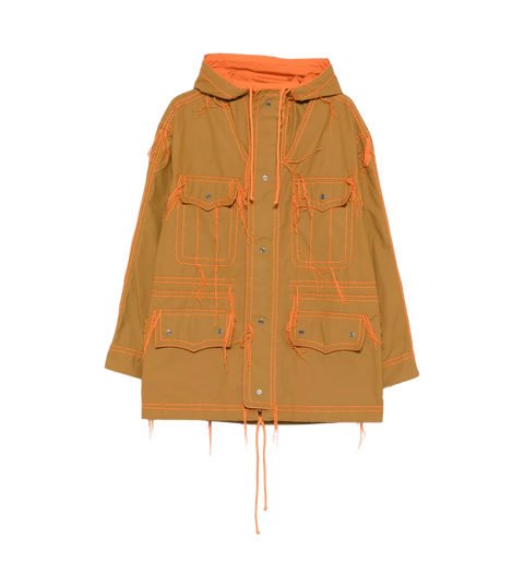 Dieser Parka in Braun- und Orangetönen kombiniert funktionales Design mit einem modernen, urbanen Look. Die Kapuze und die markanten Details verleihen dem Modell einen sportlichen Charakter, während die Stickerei für einen besonderen Akzent sorgt.